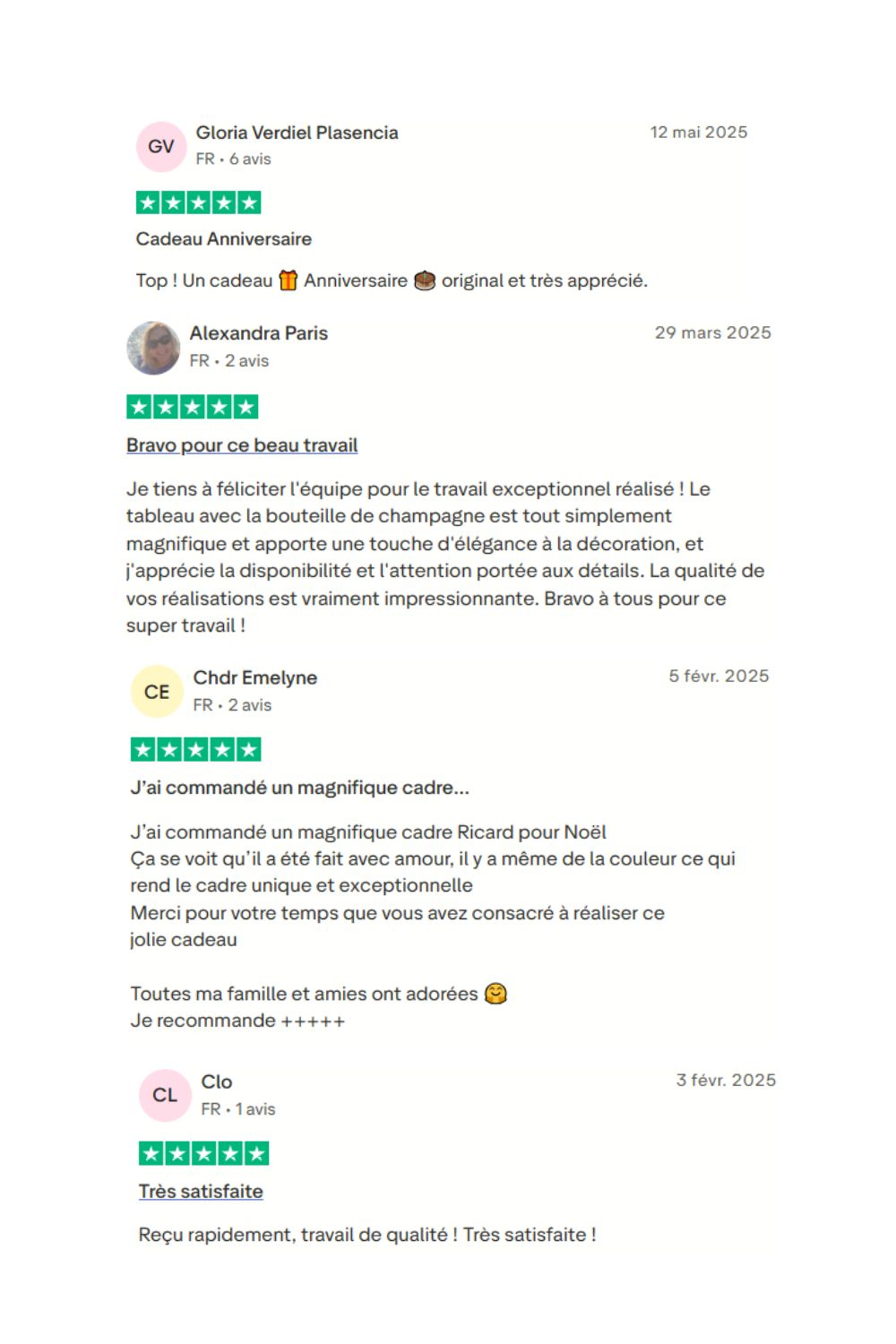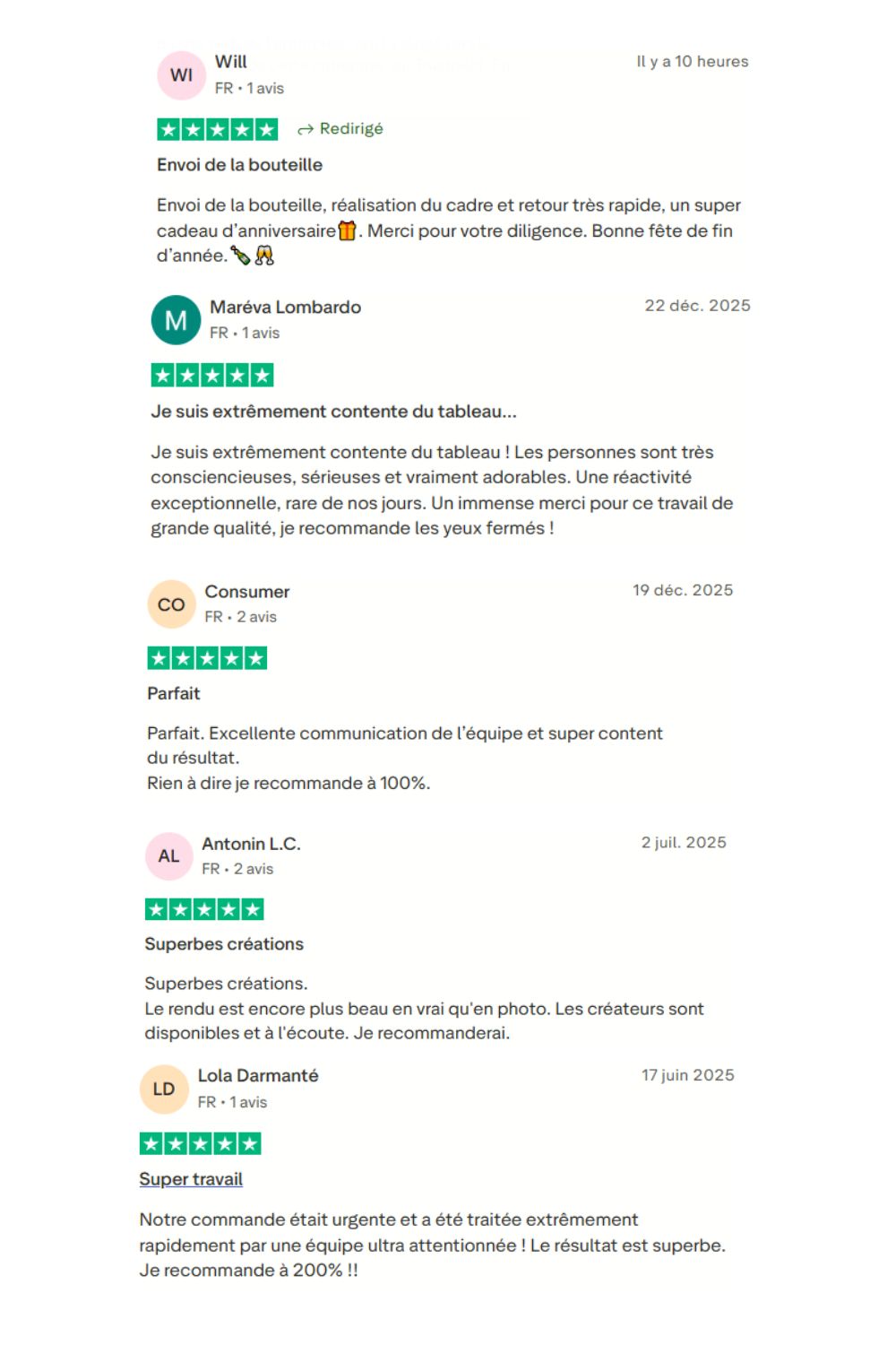 Il suffit de vous rentre sur la page Votre tableau personnalisé et de suivre toutes les indications ! Nous nous ferons un plaisir de personnaliser votre bouteille.