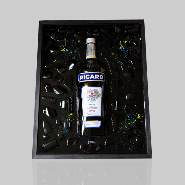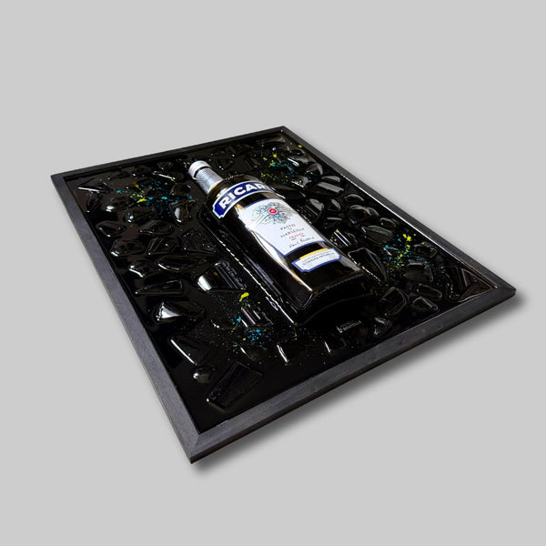 Ce tableau mesure 40x50cm et il met en avant la fameuse boisson Française au Pastis de Marseille : Le Ricard ! Réalisé avec une bouteille de 2L.