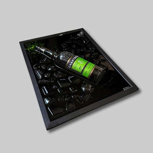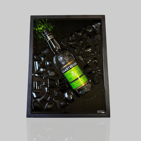 Ce tableau mesure 30x40cm et il met en avant une liqueur unique : La Chartreuse Verte